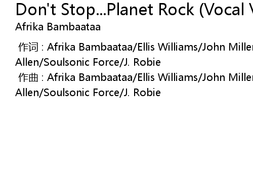 | [00:00.000] | 作词 : Afrika Bambaataa/Ellis Williams/John Miller/A. Baker/Robert Allen/Soulsonic Force/J. Robie |