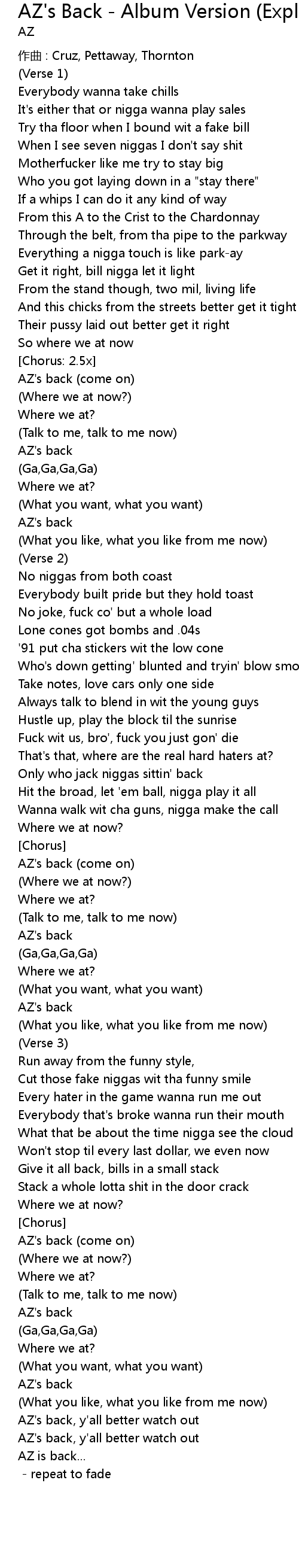 | AZ's back (come on) | |