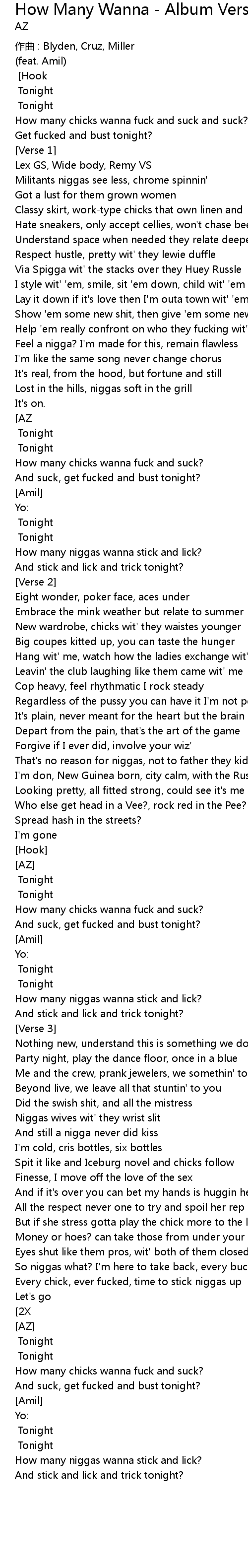 | How many niggas wanna lick tonight? AZ Tonight | |