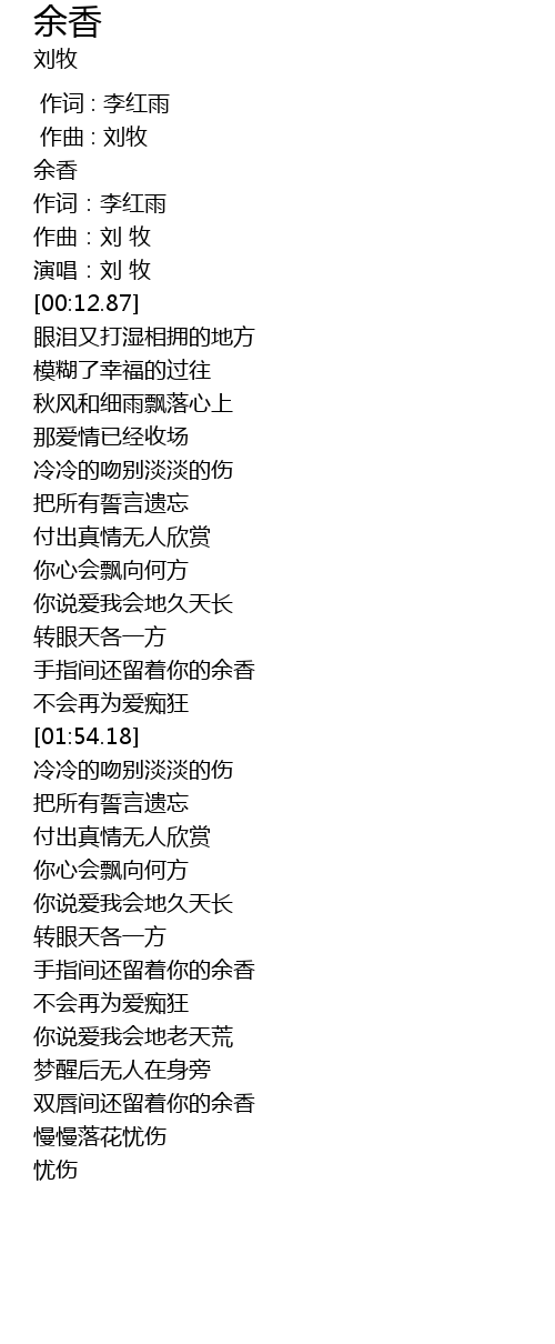| [01:38.39] | shǒu zhǐ jiān hái liú zhe nǐ de yú xiāng |