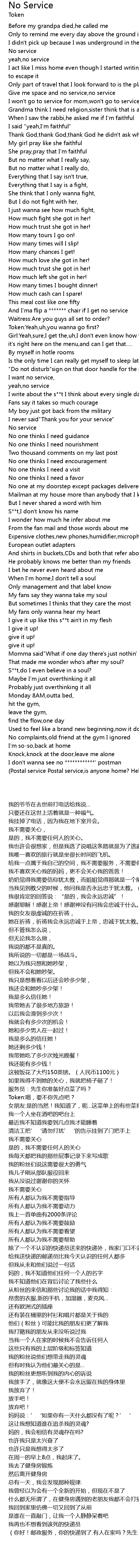 | [0:37.60] | Give me space and no service,no service |