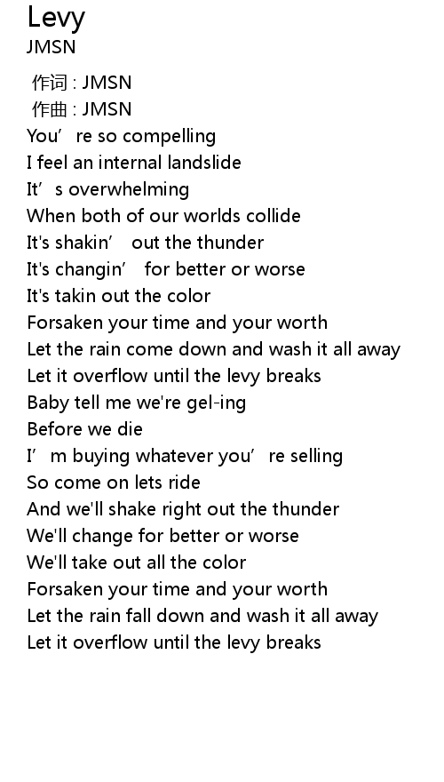 | [02:23.42] | Let it overflow until the levy breaks |