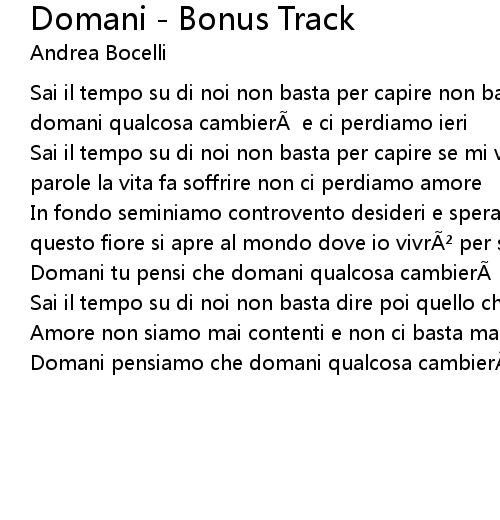 | Song | Domani - Bonus Track |