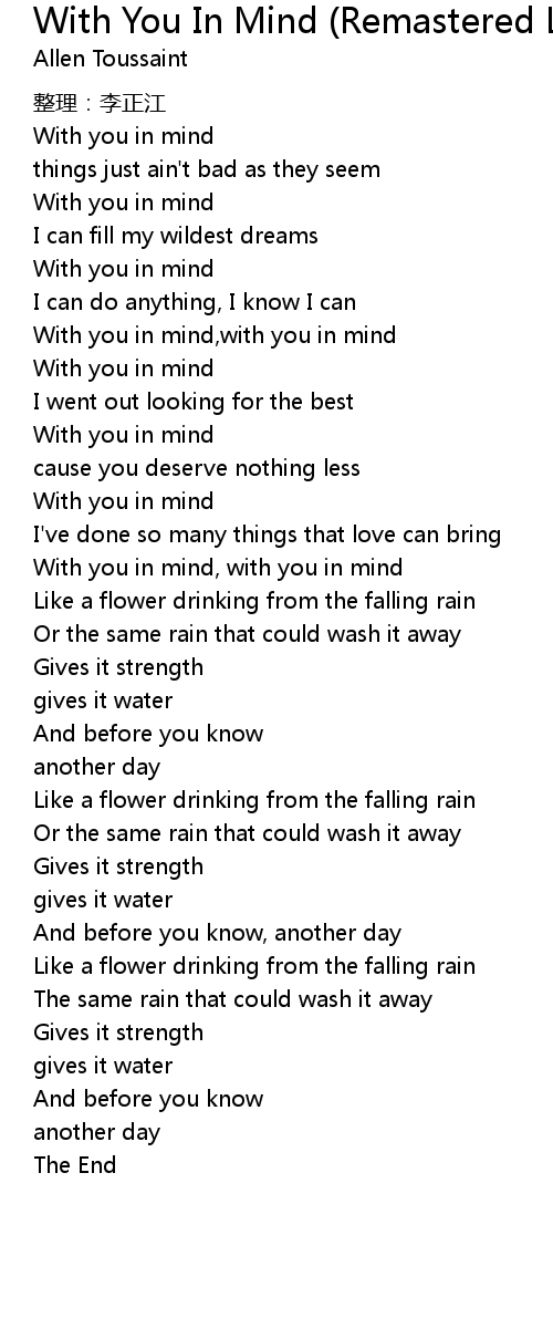 | [02:23.39] | Like a flower drinking from the falling rain |