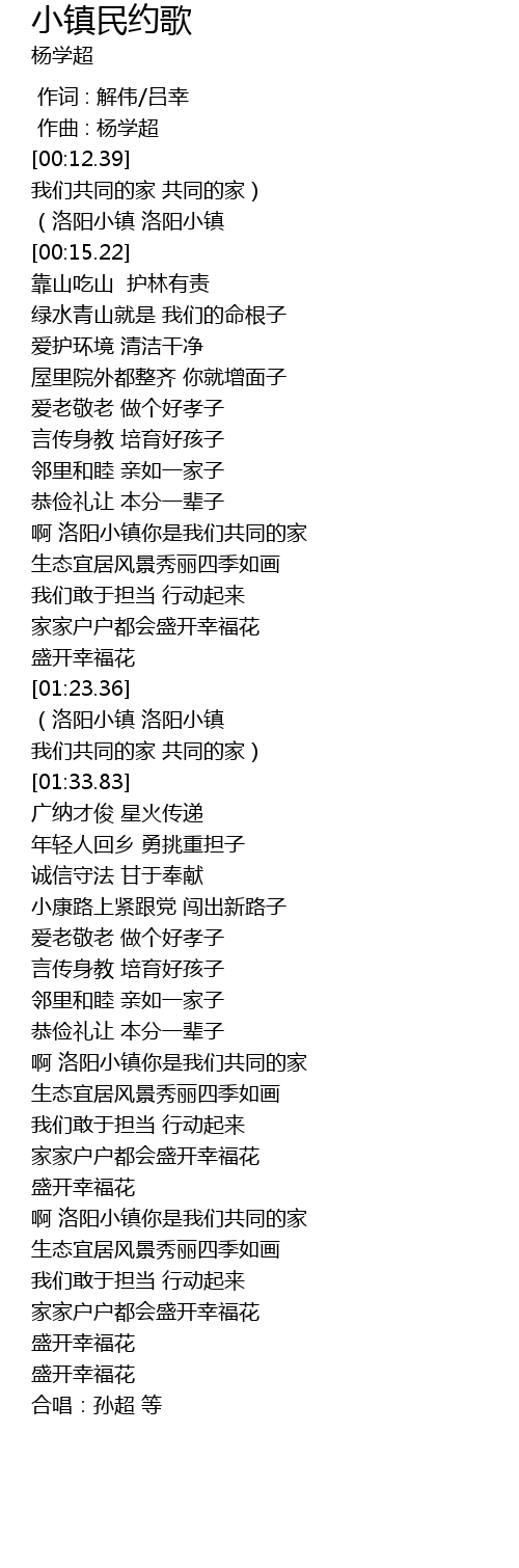 | [02:17.99] | 啊 洛阳小镇你是我们共同的家 |