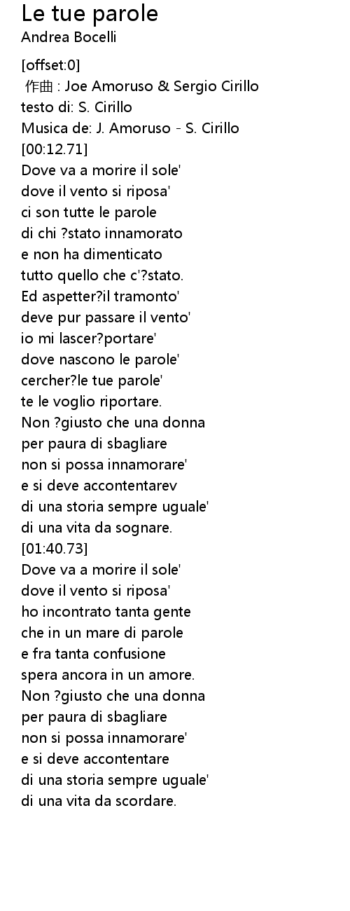 | [00:00.00] | 作曲 : Joe Amoruso & Sergio Cirillo |