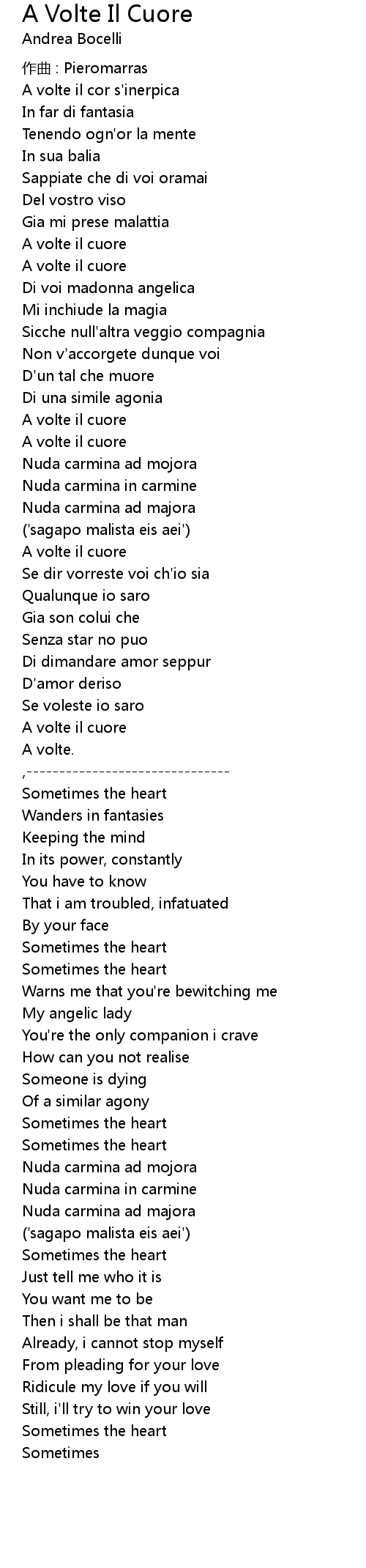 | Song | A Volte Il Cuore |
