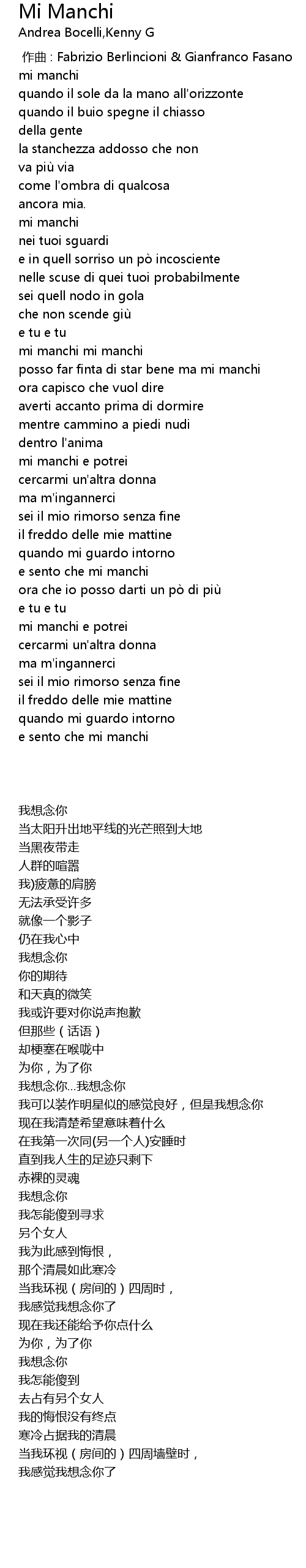 | [01:21.76] | posso far finta di star bene ma mi manchi |