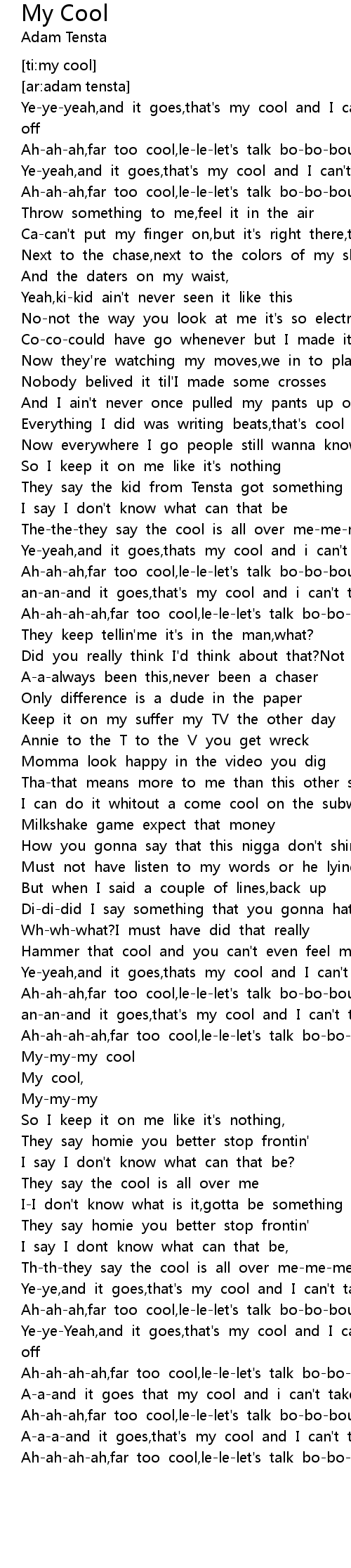 an-an-and it goes,that's my cool and I can't take it off |