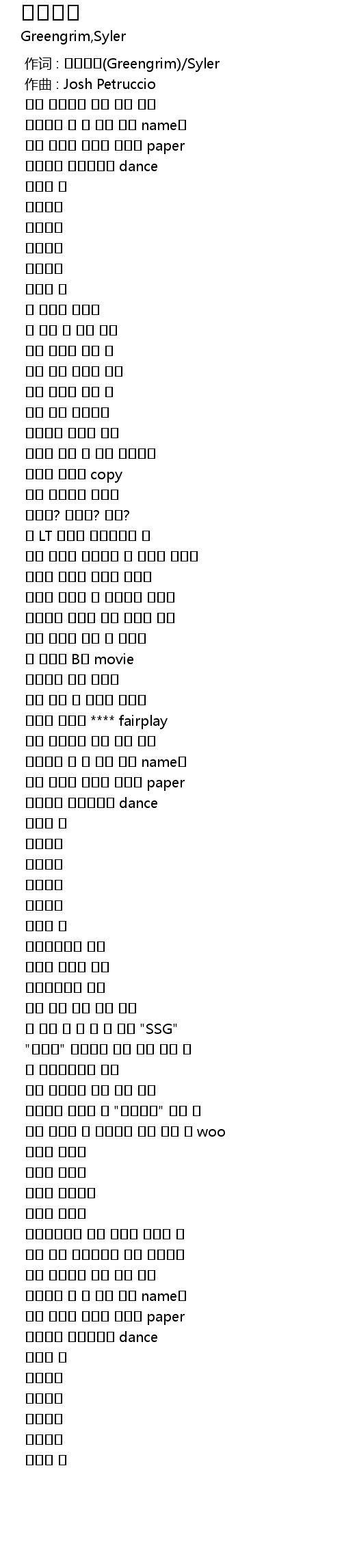 | [00:00.000] | 作词 : 그린그림(Greengrim)/Syler |