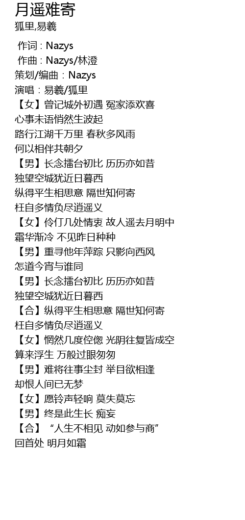 | [01:12.52] | 【女】伶仃几处情衷 故人遥去月明中 |