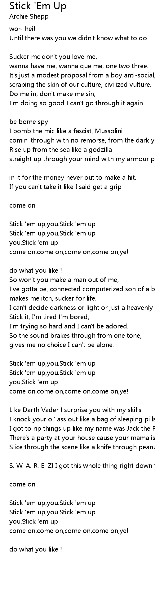 you,Stick 'em up |