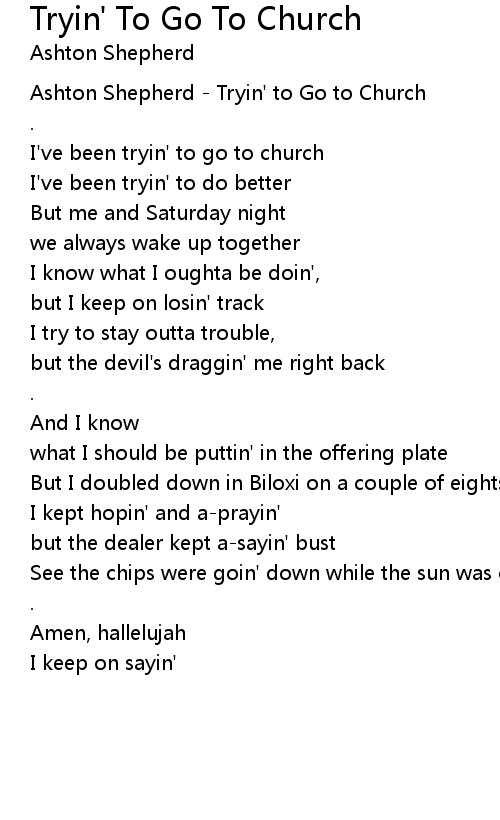I've been tryin' to go to church |