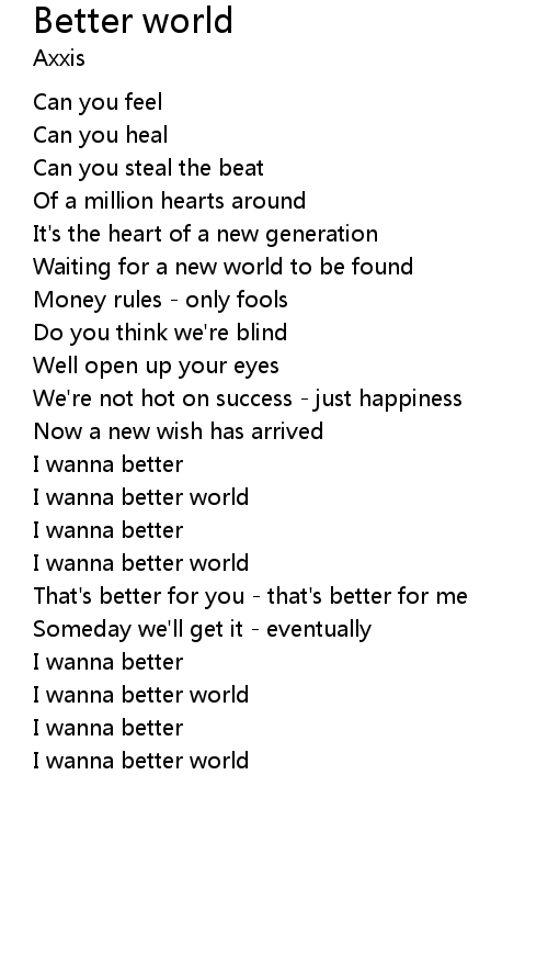 I wanna better world |