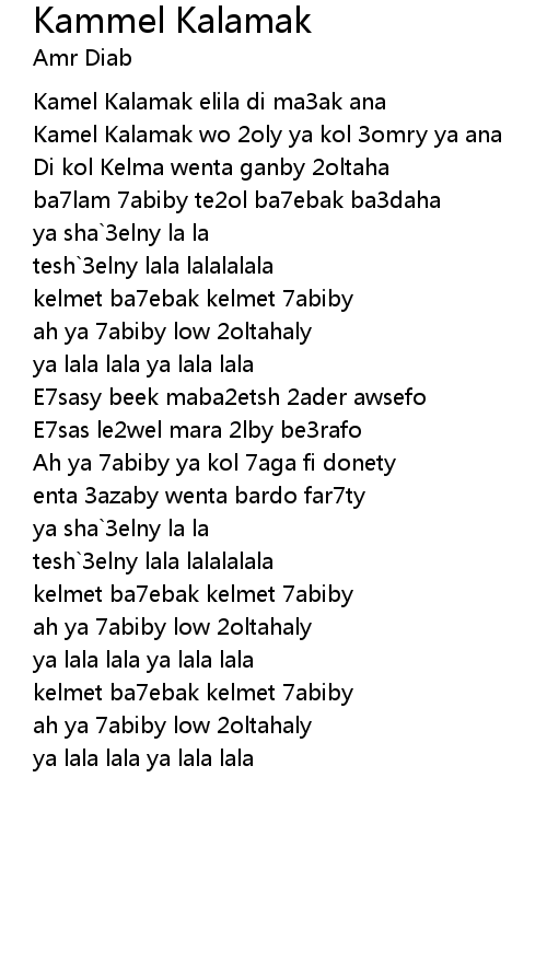 Kamel Kalamak wo 2oly ya kol 3omry ya ana |