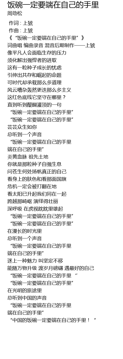 | [02:53.664] | “饭碗一定要端在自己的手里” |