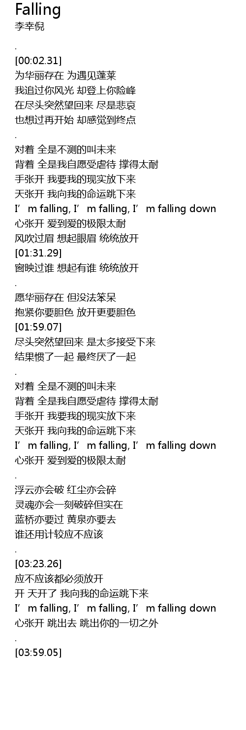 | [02:49.15] | I’m falling, I’m falling, I’m falling down |