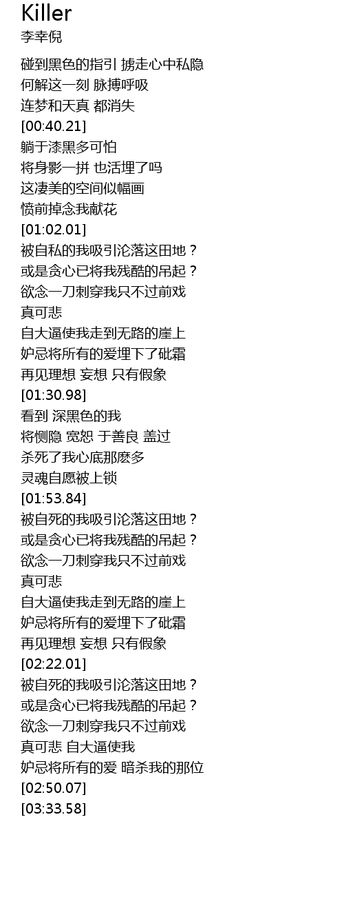 | [02:39.73] | 妒忌将所有的爱 暗杀我的那位 |