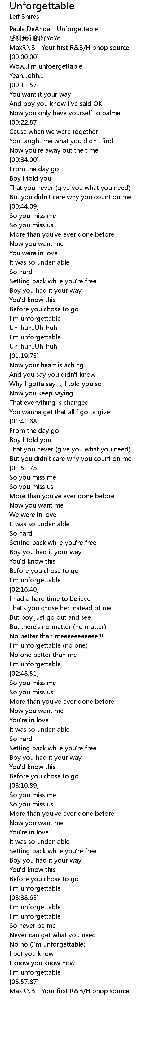 | [00:02.74] | Wow.. I' m unfoergettable |