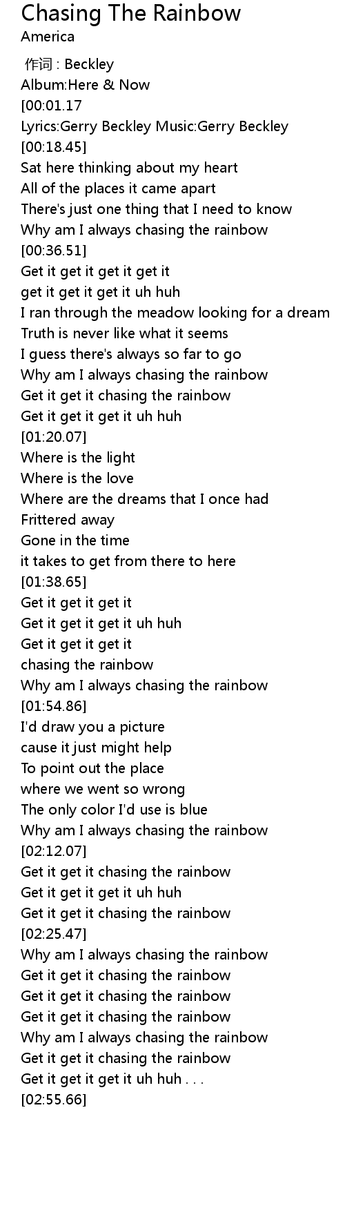 | [00:12.69] | Lyrics:Gerry Beckley Music:Gerry Beckley |