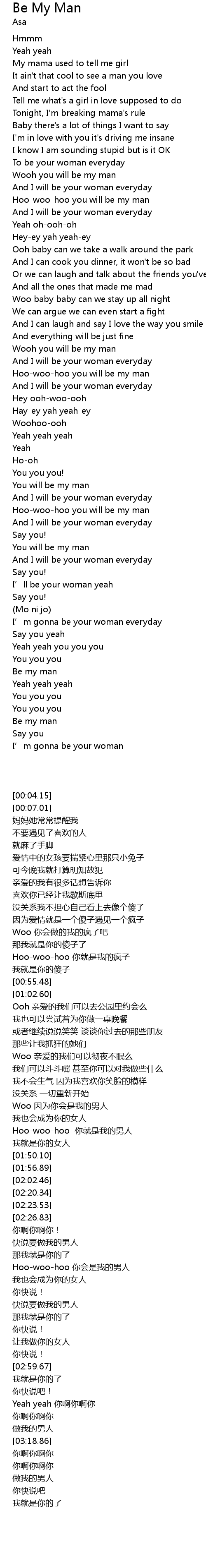 | [00:48.61] | Hoo-woo-hoo you will be my man |