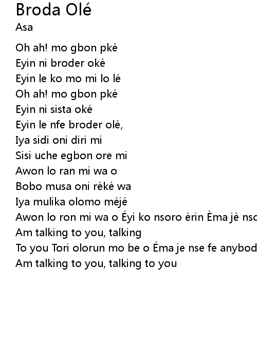 | Awon lo ron mi wa o Éyi ko nsoro èrin Èma jè nso fe anybody | |