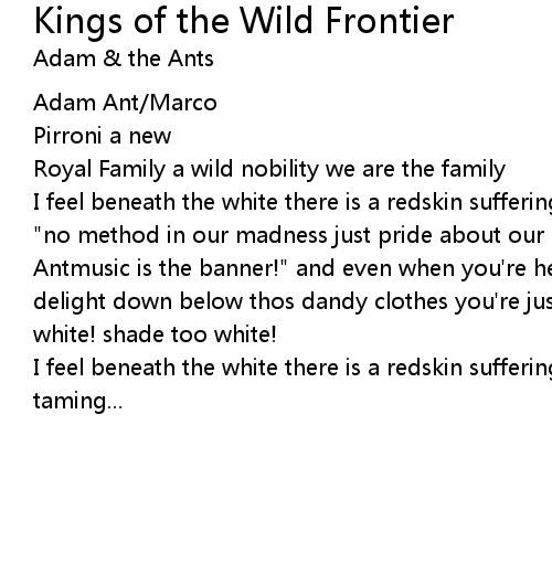 | Song | Kings of the Wild Frontier |