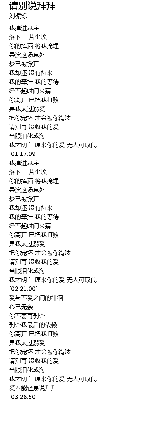 | [03:03.70] | qǐng bié zài mò shōu wǒ de ài |