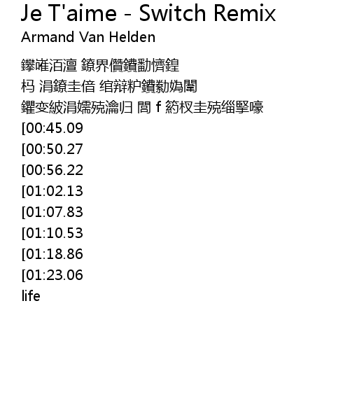 | [02:25.58][01:18.86] | oh Je t'aime |