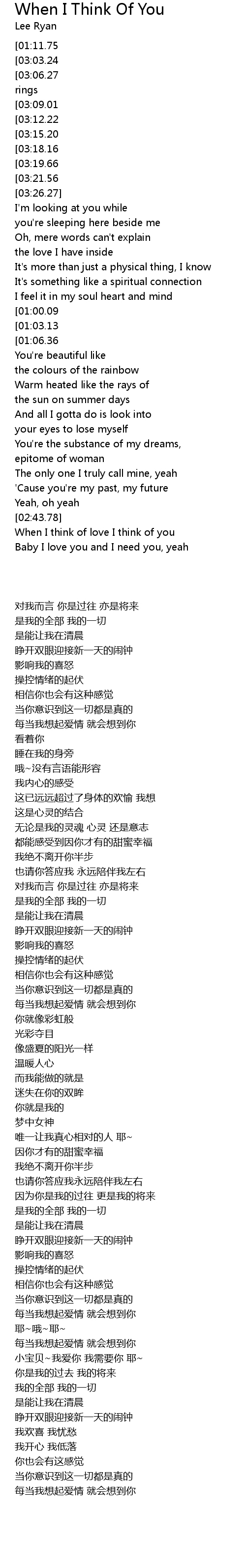 | [02:33.45][03:21.56][01:33.59][00:33.57] | When I think of love, I think of you |