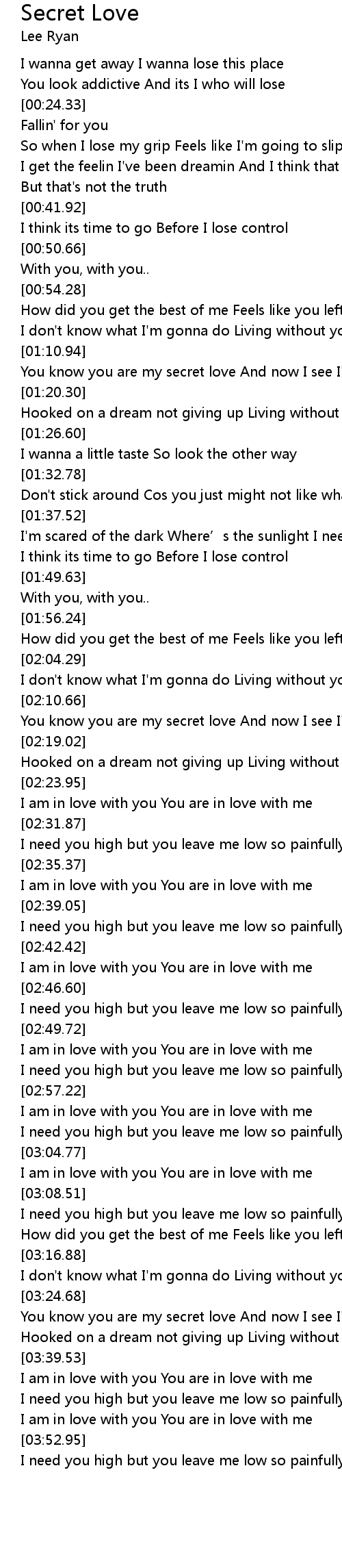 | [03:26.61] | You know you are my secret love And now I see I'm losing us |