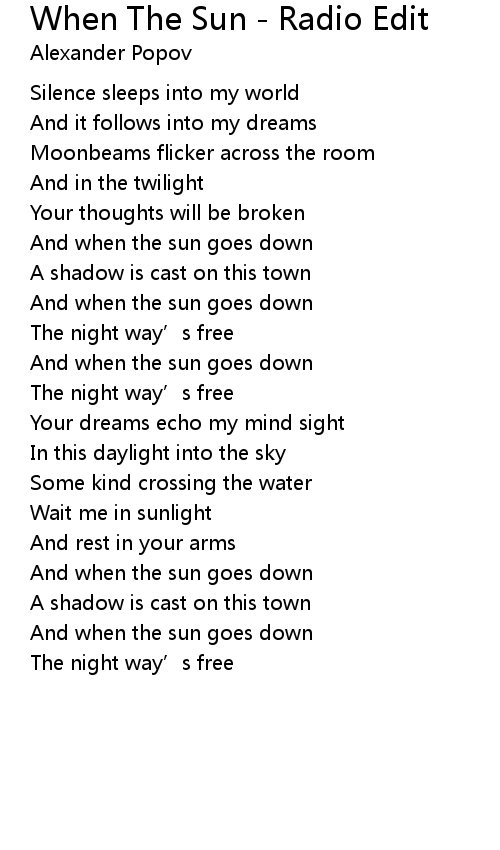 | Song | When The Sun - Radio Edit |