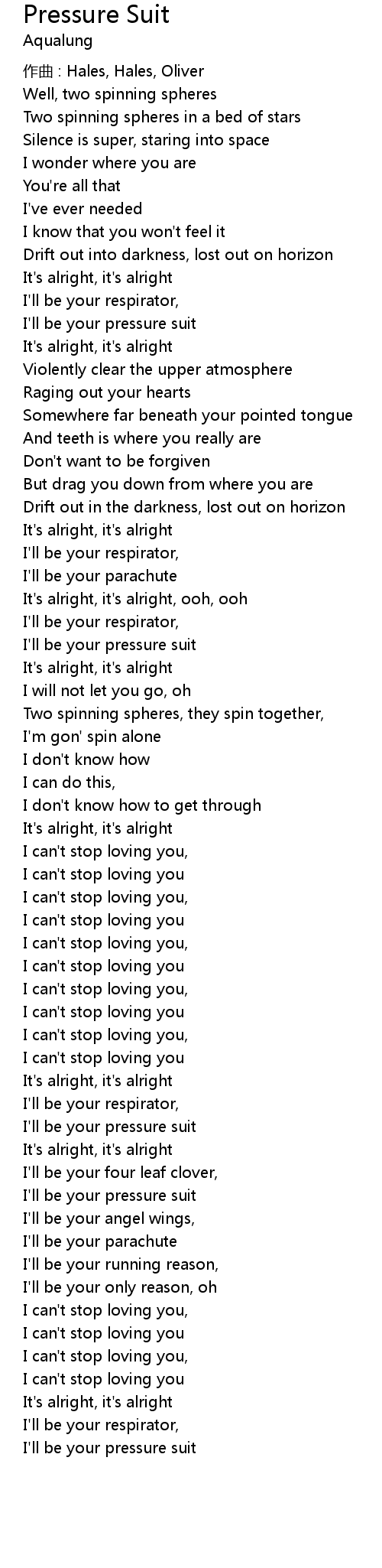| Song | Pressure Suit |