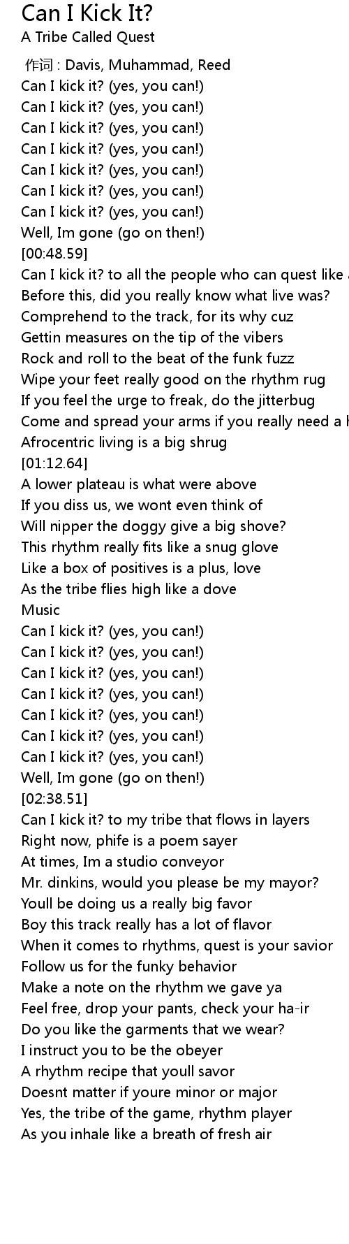 | [02:18.63] | Can I kick it? (yes, you can!) |