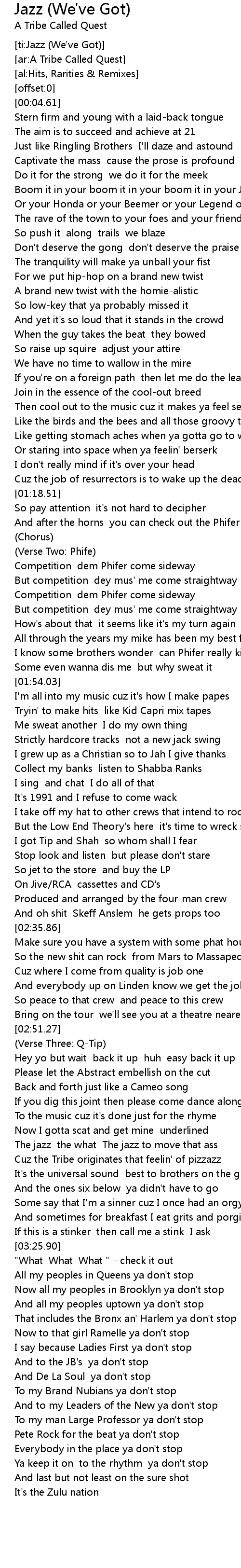[03:09.74] Cuz the Tribe originates that feelin' of pizzazz