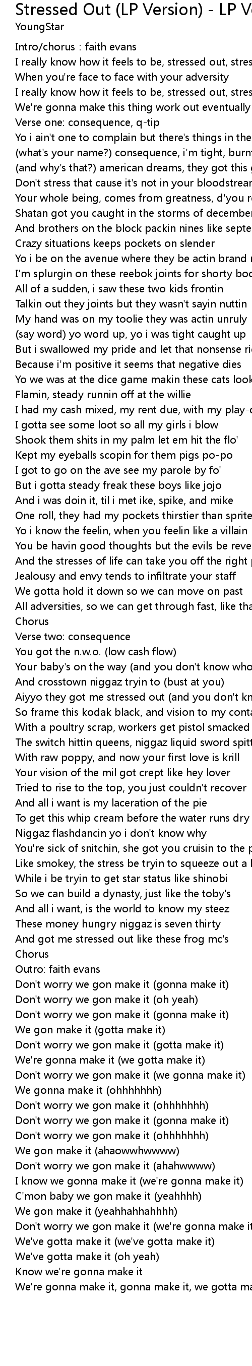 | I really know how it feels to be, stressed out, stressed out | |