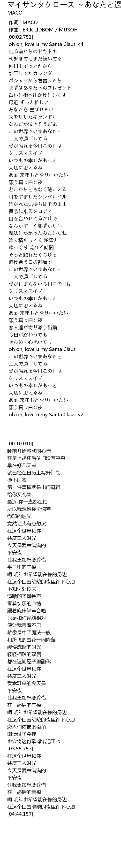 | [00:10.010] | oh oh, love u my Santa Claus ×4 |