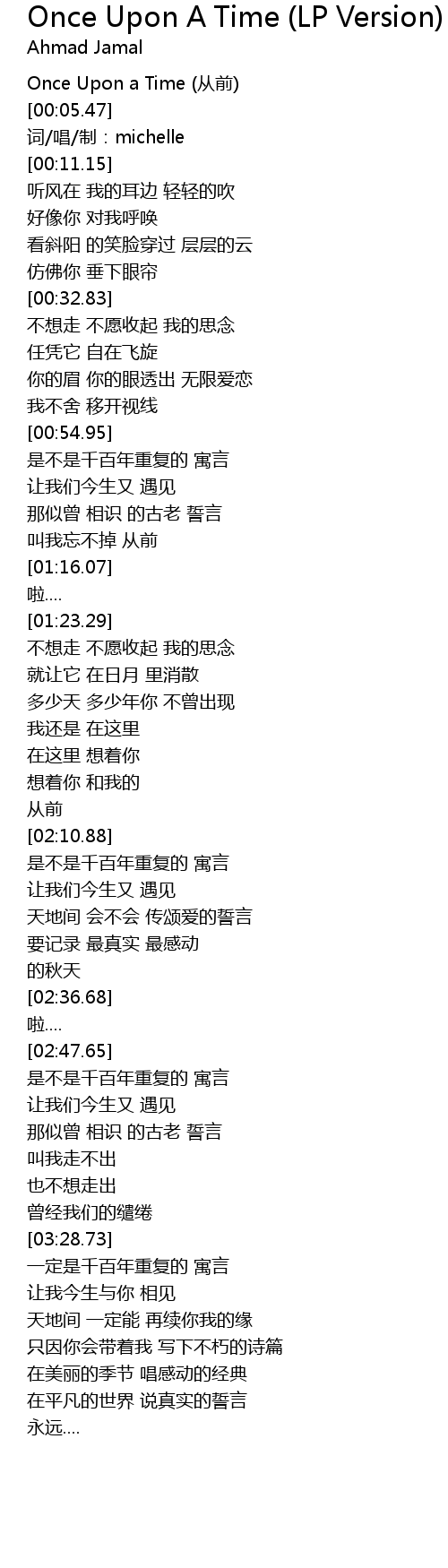 | [03:38.05] | 天地间 一定能 再续你我的缘 |