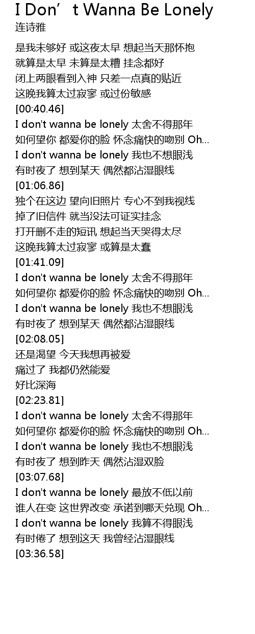 | [03:21.23] | I don't wanna be lonely 我算不得眼浅 |