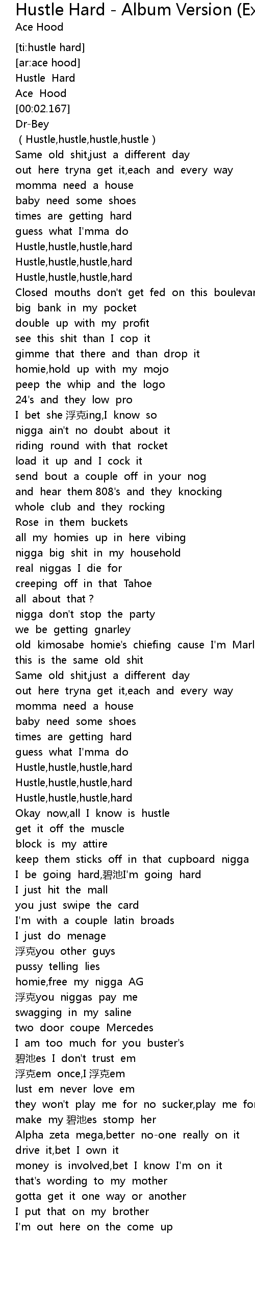 | [01:42.762] | Hustle,hustle,hustle,hard |