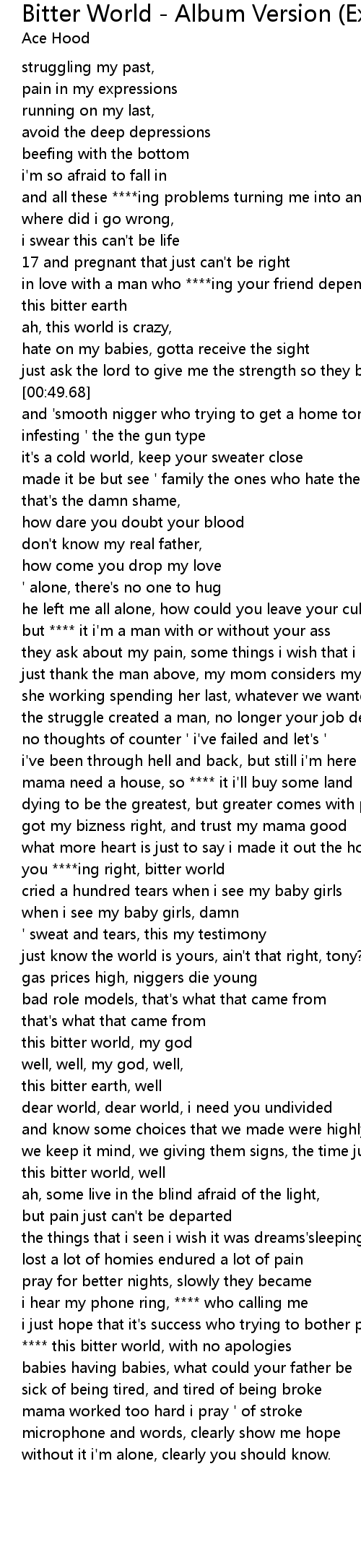 you ****ing right, bitter world |