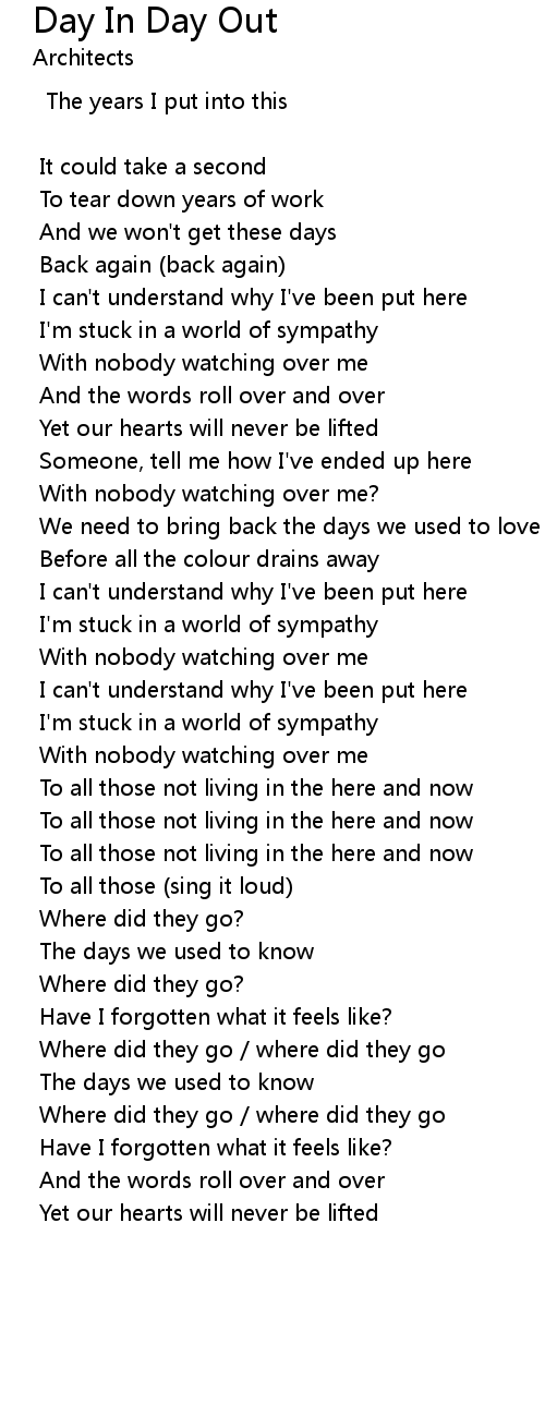 Day In Day Out Lyrics