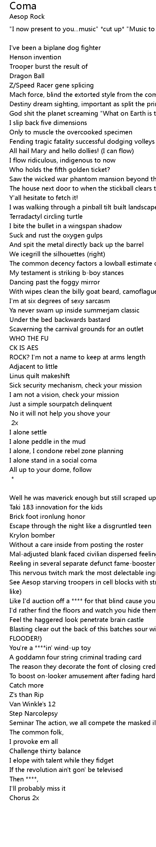 "I now present to you...music" *cut up* "Music to make you stutter" [Aesop Rock] |