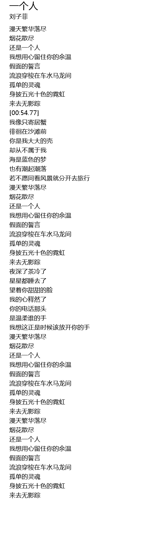 | [01:44.07] | 流浪穿梭在车水马龙间 |