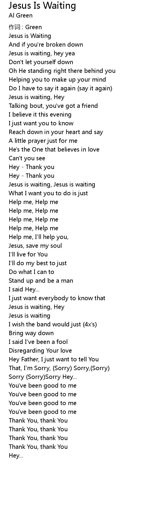 | Jesus is waiting, hey yea | |
