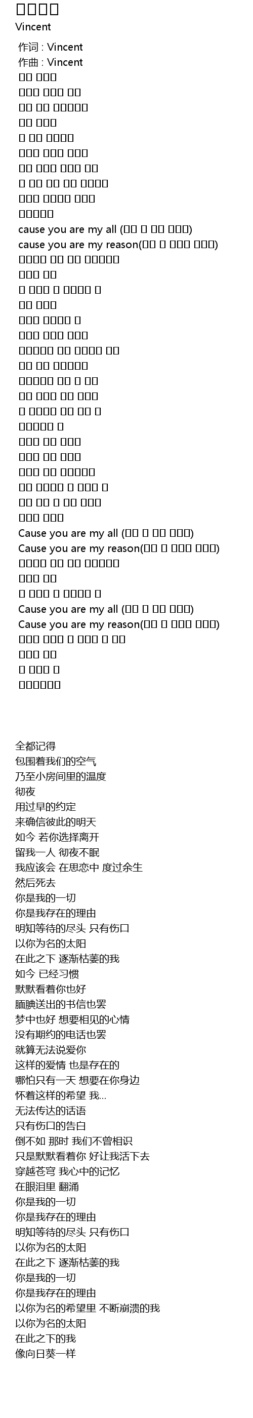 | [01:15.925] | cause you are my all (너는 내 모든 것이야) |
