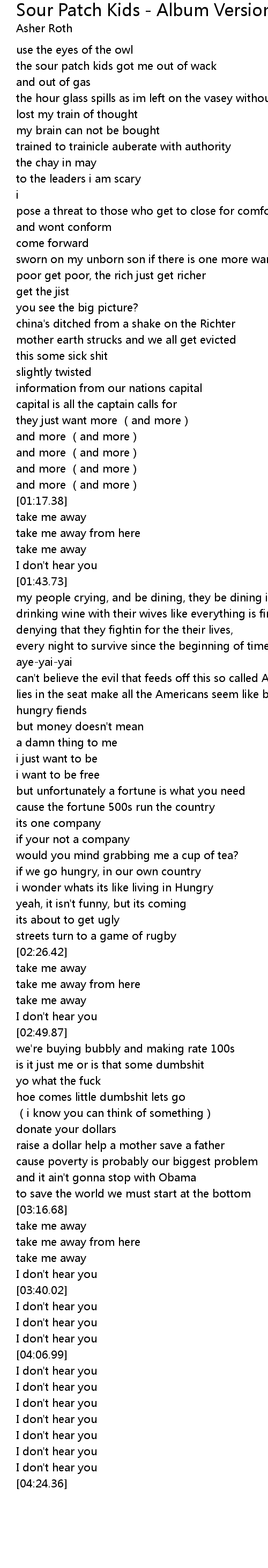 | [00:29.05] | the sour patch kids got me out of wack |