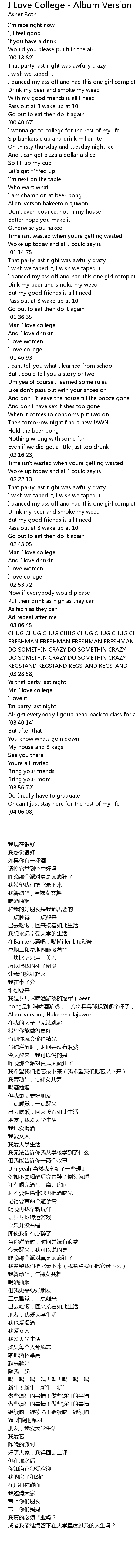 | [02:52.00] | I love college |