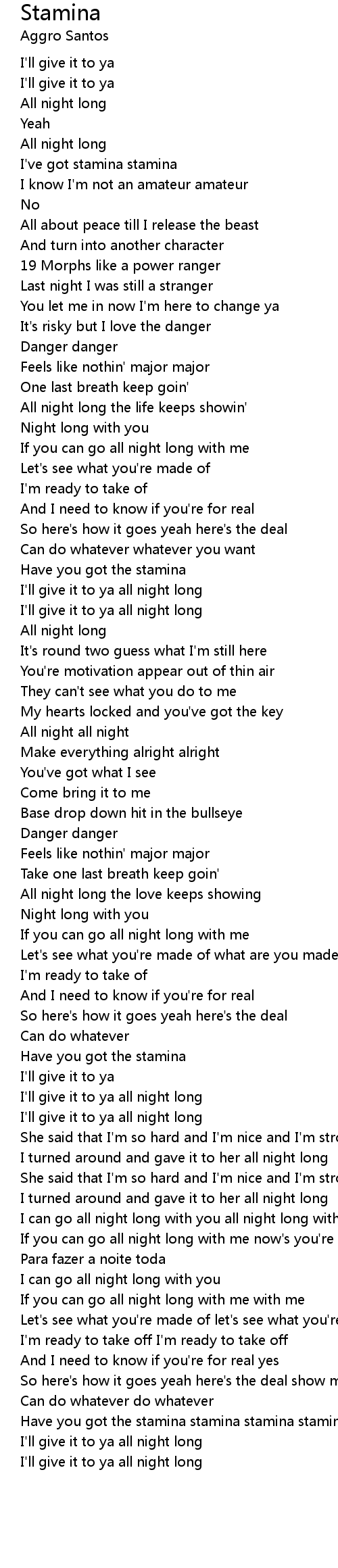 I've got stamina stamina |