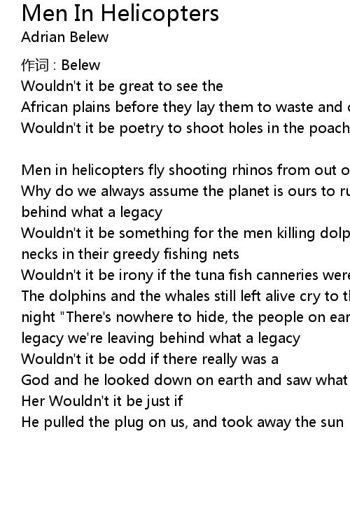 | Song | Men In Helicopters |